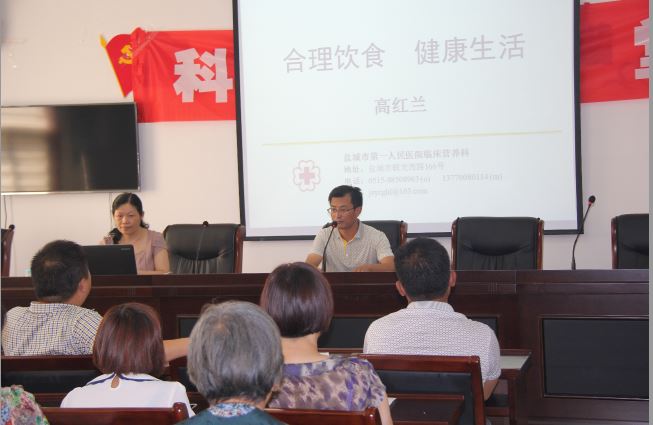 7月29日上午,盐城市科协邀请省营养学会临床营养专业委员会委员、市营养学会理事、盐城市第一人民医院营养科主任高红兰走进亭湖区新民社区,开展“科协大讲堂”进社区活动,主讲《合理饮食,健康生活》专题科普报告会,40多名社区居民聆听了报告。