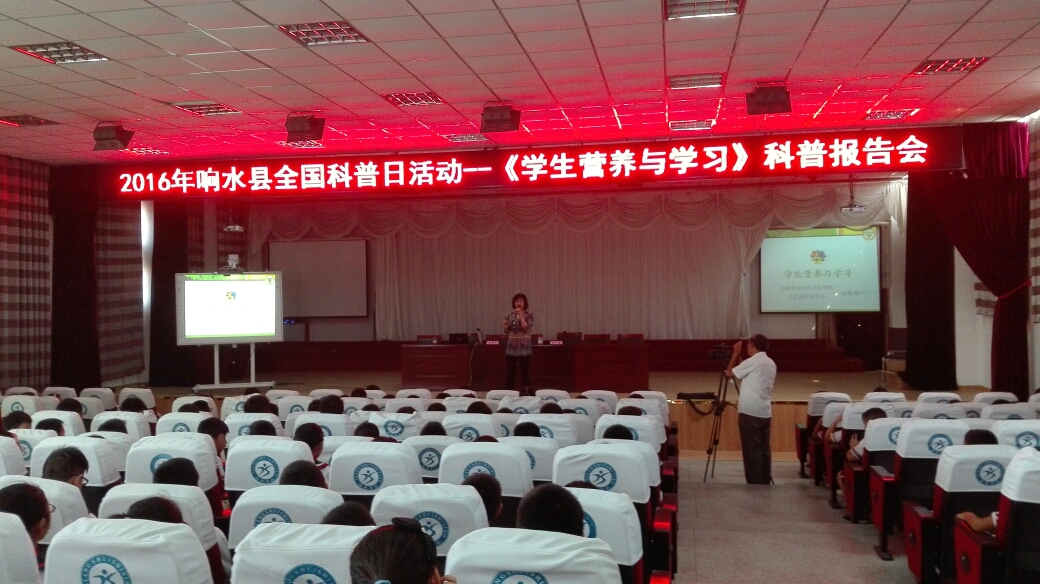 9月9日下午,在2016年全国科普日活动即将拉开序幕之时,响水县科协联合县教育特邀省科协科普专家,东南大学公共卫生学院营养与食品卫生学系主任,博士生导师孙桂菊教授来响水,为该县第一小学近千名师生作“学生营养与学习”专场科普讲座。孙教授将博大精深的营养学与现阶段青少年的营养习惯相结合,深入浅出地说明有利于青少年健康成长、快乐学习的营养菜单。许多师生及学生家长表示,听过报告,才明白了一些同学爱喝碳酸饮料,不喜牛奶和疏菜,不吃猪肝和蛋黄,水及水果摄入量不足,食物品种不丰富等都属于不健康的饮食习惯,了解了营养的种类、作用等。(响水县科协)