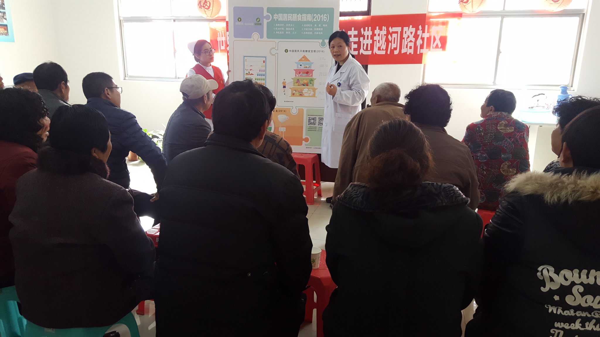 4月7日为“世界卫生日”,当天下午,市营养学会联合市第一人民医院营养科和团委走进越河路社区开展营养宣传活动。活动通过宣传讲解、咨询义诊、测量血压等形式来普及合理营养、防治高血压等相关知识,提高群众的健康意识。