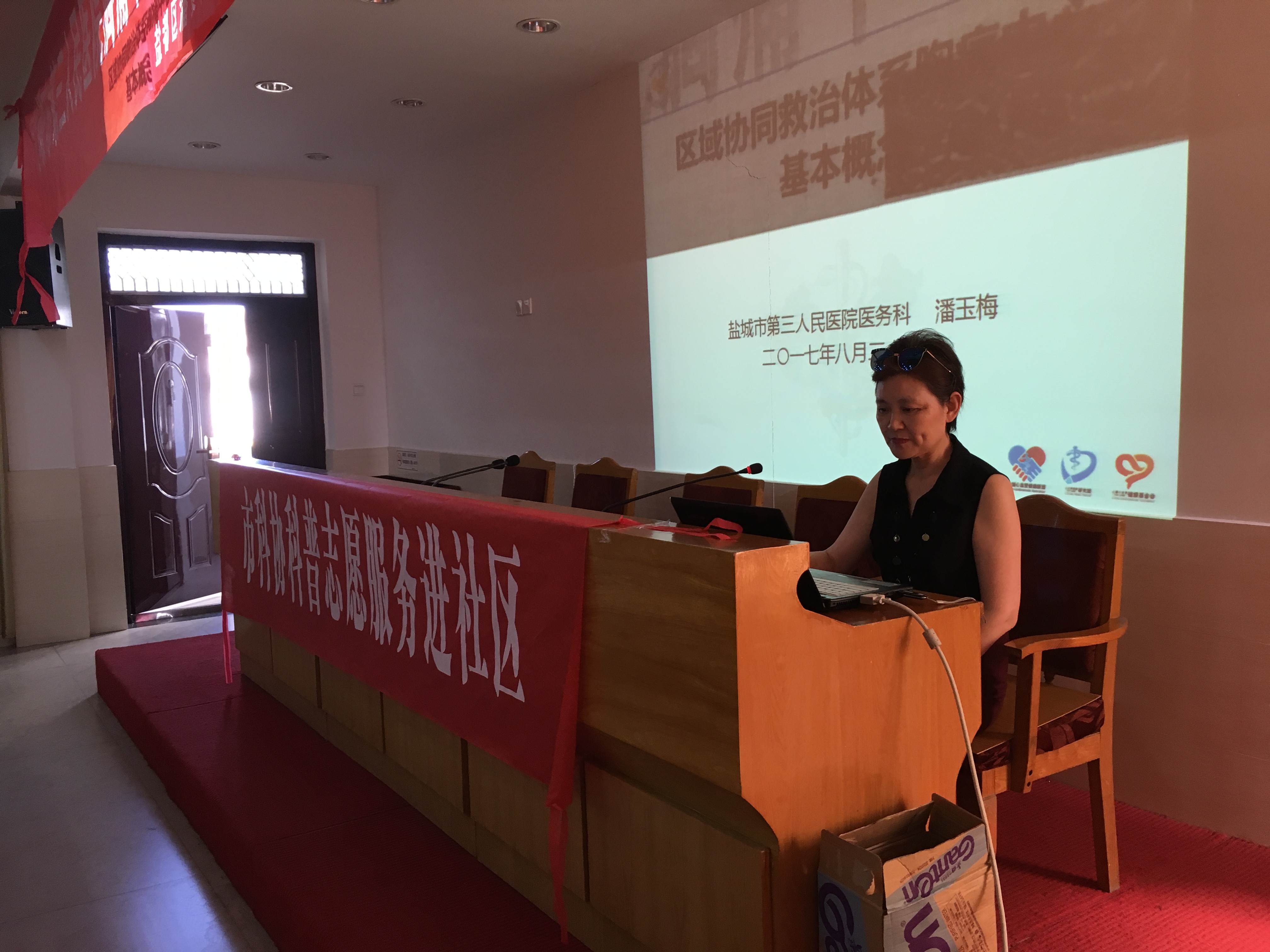 2017年8月26日下午,由市科协主办,市卒中学会承办的科普知识讲座在盐都区潘黄街道社区卫生服务中心举办。市卒中学会常务理事、市第三人民医院心内科主任医师、科主任吴春阳带领市三院胸痛中心成员参加科普活动。