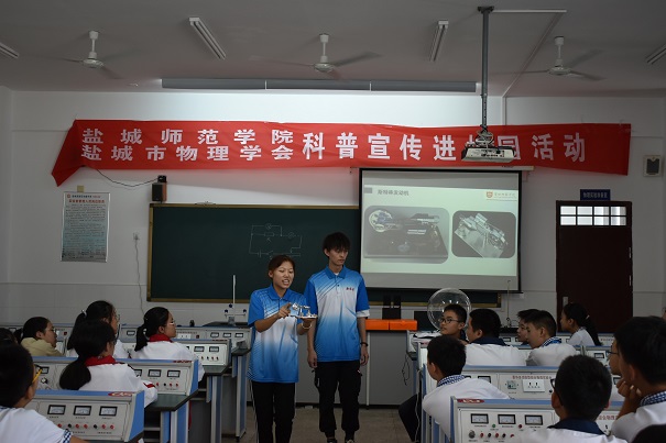 9月11日下午,由盐城市物理学会举办的科普志愿服务校园行系列活动来到了盐城市高新区实验学校,为在校的中小学生进行科普宣传。盐城市物理学会理事长陈昌远、盐城市物理学会秘书长刘成林、盐城师范学院物理与电子工程学院副院长张志海、盐都区教研员王乃东出席了此次活动。
