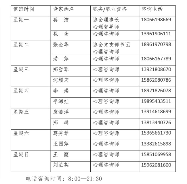 附心理咨询师值班表: