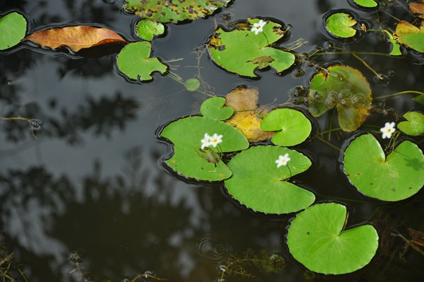 在沟谷雨林和野生花卉园之间连接的池塘和百花园的池塘,生长着较多的金银莲花(现在正在开花)。可当你路过的时候,或许你只留意了满池的睡莲,而“遗忘”了在角落里正在绽放的金银莲花。金银莲花的叶子酷似睡莲的叶子(像睡莲的幼叶),而花朵又小(直径2cm左右),从而夹杂在睡莲里“难以”区分。
