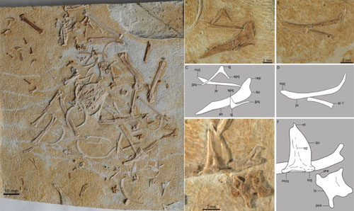 长期以来,由于化石保存的原因,上述眼眶后部骨骼的变化在恐龙——鸟类的演化过程中是如何发生的并不清楚。通过详细的对比,王敏等首次发现翼鸟的方颧骨与始祖鸟、孔子鸟、会鸟、热河鸟和古喙鸟相似,都失去了腹后侧突,而成“L”型骨骼。相比于恐龙,方颧骨和颧骨在原始鸟类中变得纤细,同时鳞状骨突和眶后骨突退化明显,推测颧骨——眶后骨和方颧骨——鳞状骨的关节在早白垩世的鸟类中就已经缺失,并且“T”型的方颧骨在向短柄状的形态演化过程中,经历了“L”型过渡阶段,并首先失去了腹后侧突,表明这一有利于鸟类取食活动的头骨特征在鸟类演化初期就已经出现。