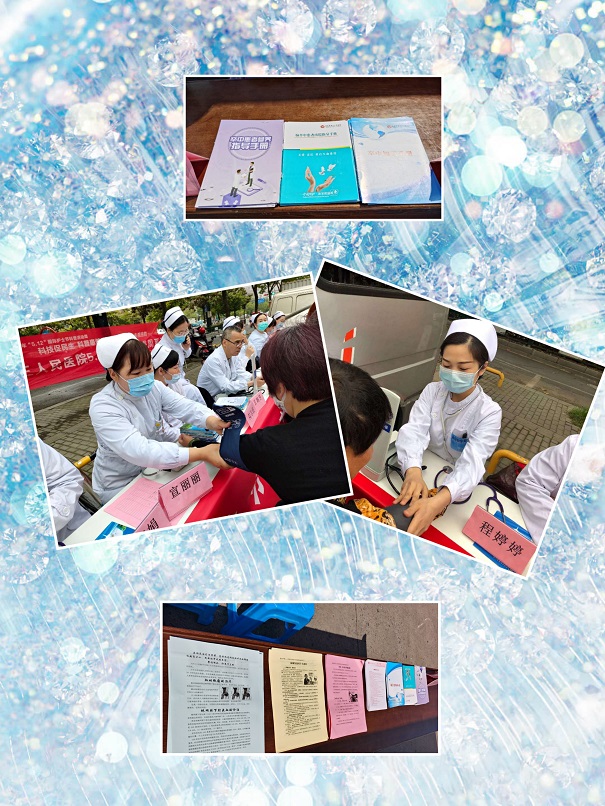 高血压和高血糖都是卒中发生的危险因素,内分泌科护士长和糖尿病专科护士在给居民测量血糖,指导居民正确管理血糖;心内科的护士长们在向居民讲解高血压的危害和血压管理的重要性,骨干护士在给居民示范心肺复苏的操作。