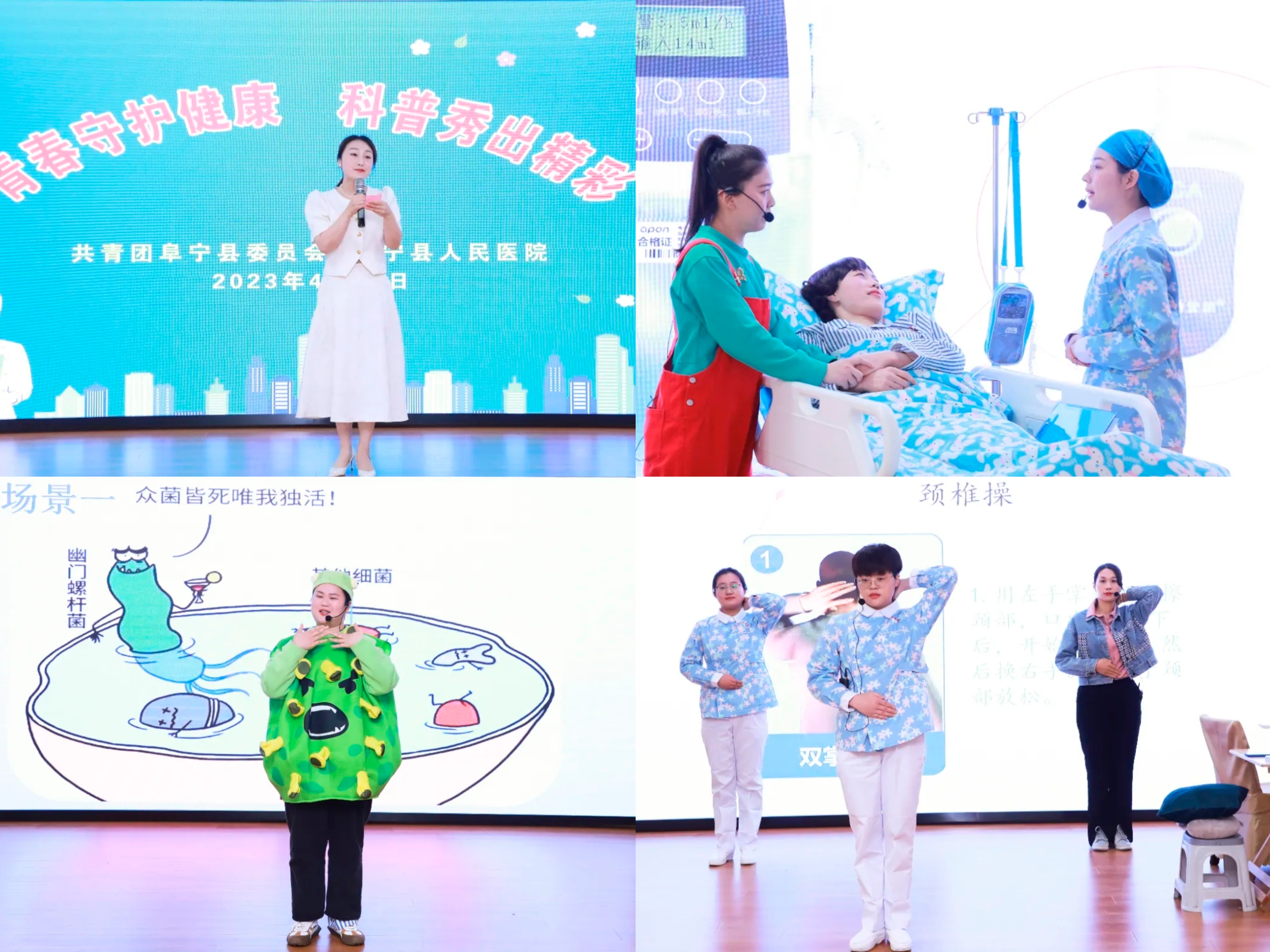 为普及健康知识,倡导健康文明的生活方式,不断提高人民群众健康素养和科学素质,4月26日,团县委、阜宁县人民医院和阜宁县科协联合开展“青春守护健康,科普秀出精彩”护理健康科普秀活动。