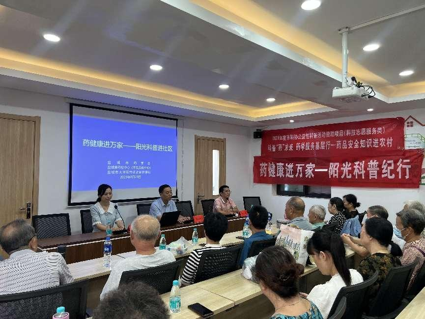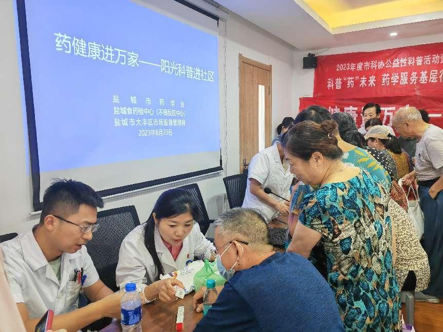 为进一步传播药品安全知识,提升居民安全用药和正确处理过期药品的能力,推动药学科普活动品牌化、大众化、社会化。8月23日,市药学会、市食品药品监督检验中心(药品不良反应监测中心)、大丰区市场监管局、市第一人民医院药学部在大丰区大中街道康平社区联合开展以“药健康进万家——阳光科普进社区”为主题的公益科普宣传活动,该活动也是市科协科普志愿服务活动品牌“科普‘药’未来”系列活动之一。