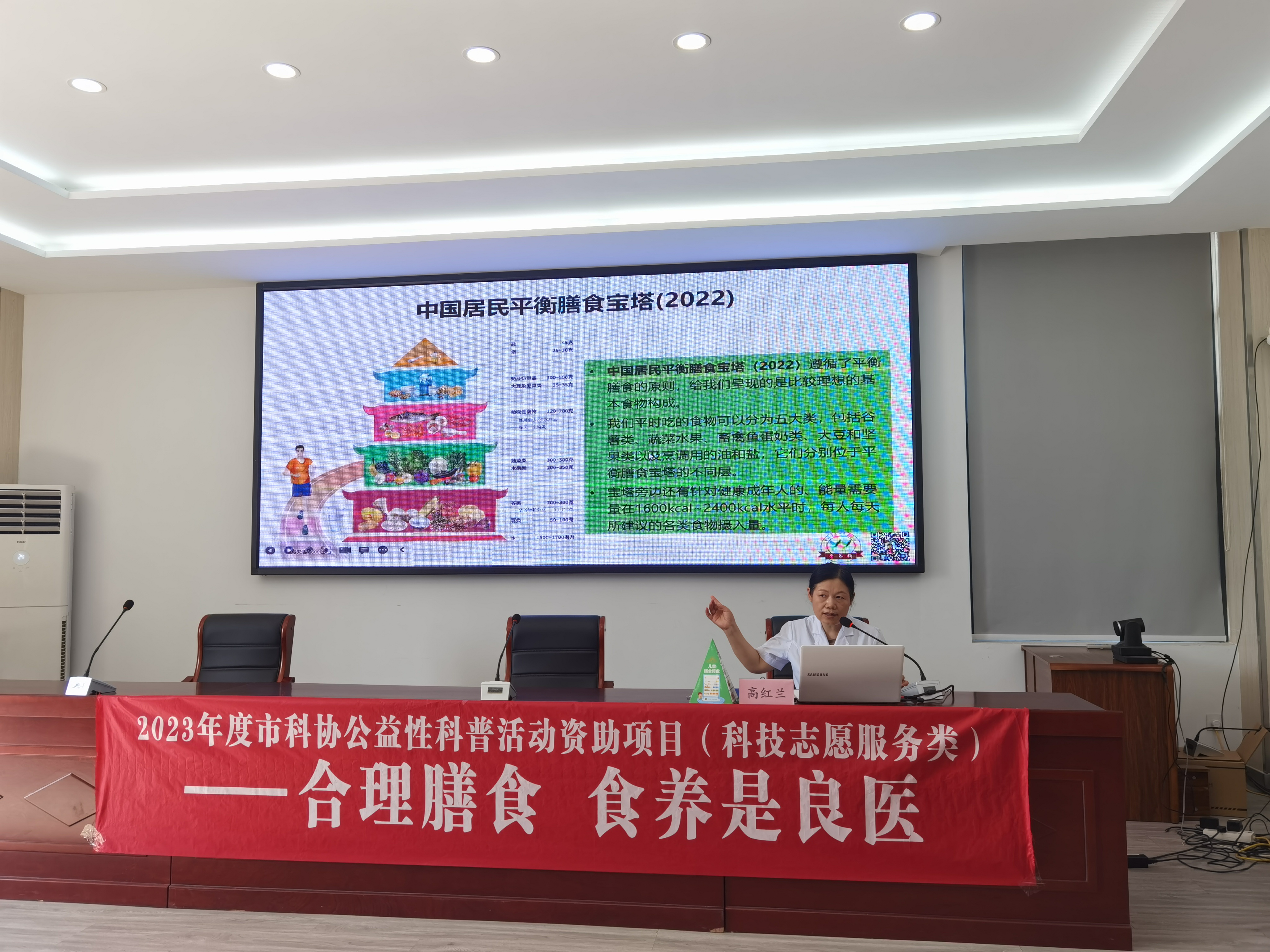 活动期间,高红兰受邀为新民村村民作《合理膳食,食养是良医》科普讲座,郭红霞受邀为佳富村村民作《吃动平衡 健康管理》科普讲座。两位专家分别以《中国居民平衡膳食宝塔》为基础,从健康人、慢性病人群和慢性病老年个体三个层次入手,将膳食宝塔中的数据日常化,并推出了成年人极简版每日食谱,帮助老年群体更快更好的利用宝塔掌握合理膳食的窍门。结合临床实例,针对老年人群“两个不够,四个太多”(蔬菜量不够、豆制品量不够、水果太多、动物性食物太多、主食精制米面太多和油盐太多)六大饮食常见问题提出了详细的解决方案,深入浅出,以生动活泼、通俗易懂的方式为大家答疑解惑,获得了村民的阵阵掌声。
