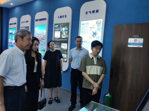 在调研射阳县气象学会时,夏倩理事长详细介绍了气象科普馆各展区特色内容以及学会建设运行情况。王培红一行认真参观了科普馆传统气象设备和气象台控制监测系统,并围绕党建引领学会建设和低碳科普服务气象事业进行深入交流。